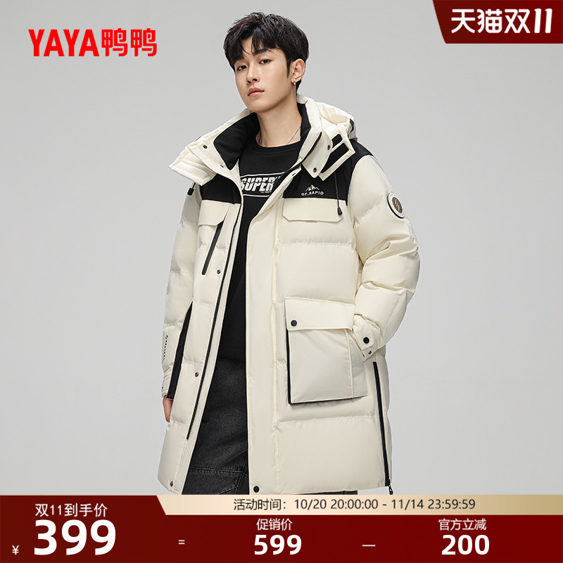 鸭鸭羽绒服男士2025年秋冬反季中长款连帽时尚百搭保暖加厚外套A