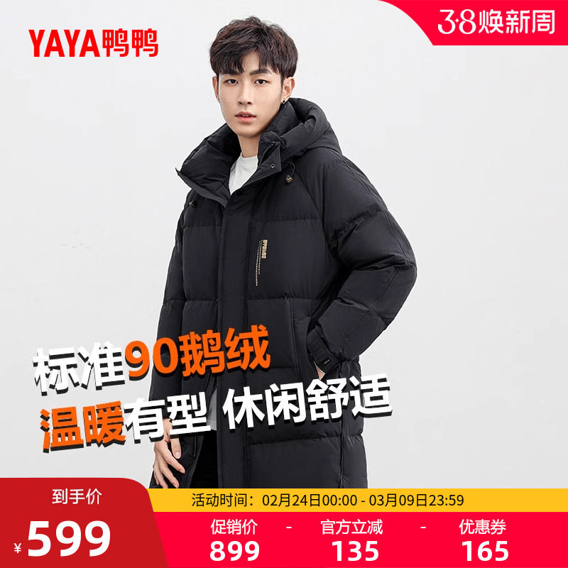 鸭鸭羽绒服男2025年冬季新品90鹅绒中长款连帽时尚百搭加厚外套A