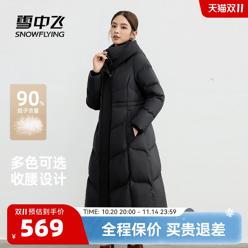 雪中飞2025冬新款羽绒服女士长款A字收腰显瘦气质简约时尚百搭