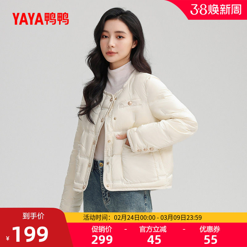 鸭鸭羽绒服女2025年秋冬反季季短款轻薄型鸭绒保暖时尚潮流外套A