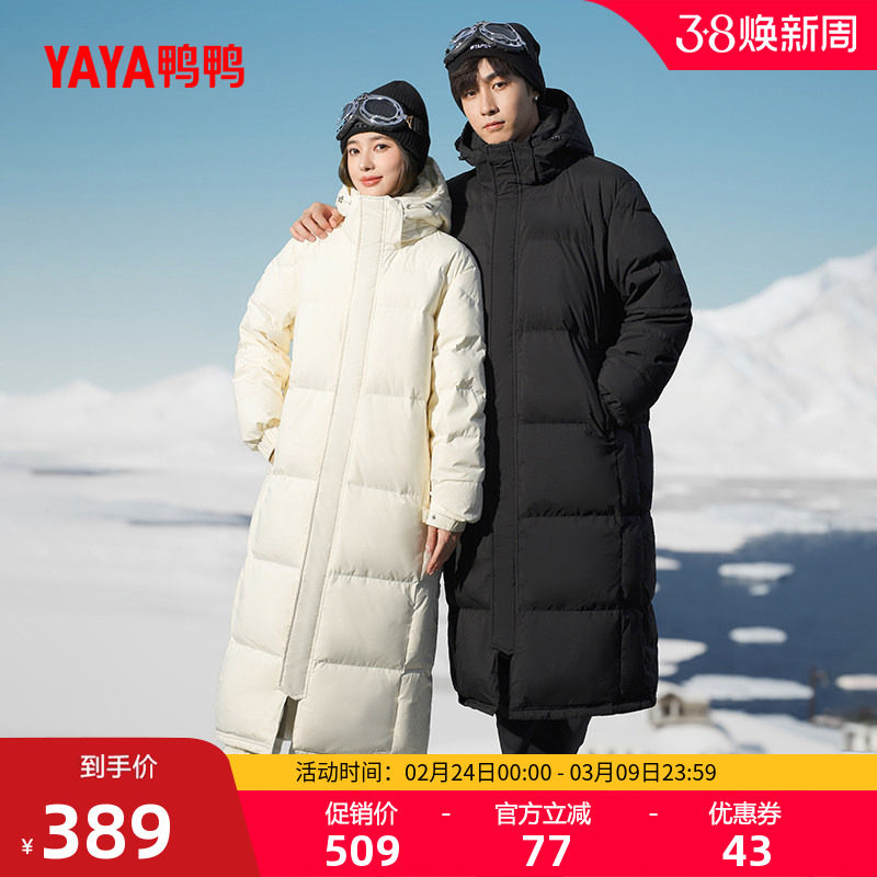 鸭鸭滑雪羽绒服男女同款反季中长款过膝超长加厚保暖鸭绒厚外套A