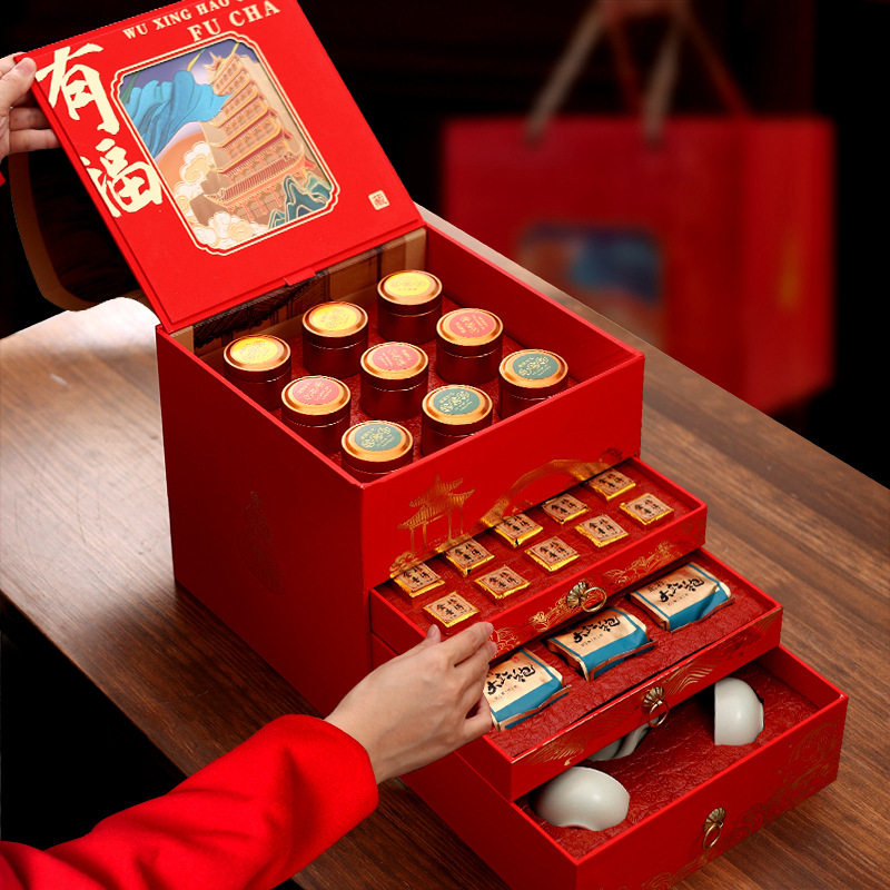 百鸟朝凤四层送礼礼盒金骏眉梅肉桂小沱茶茶叶组合包装送高档茶具