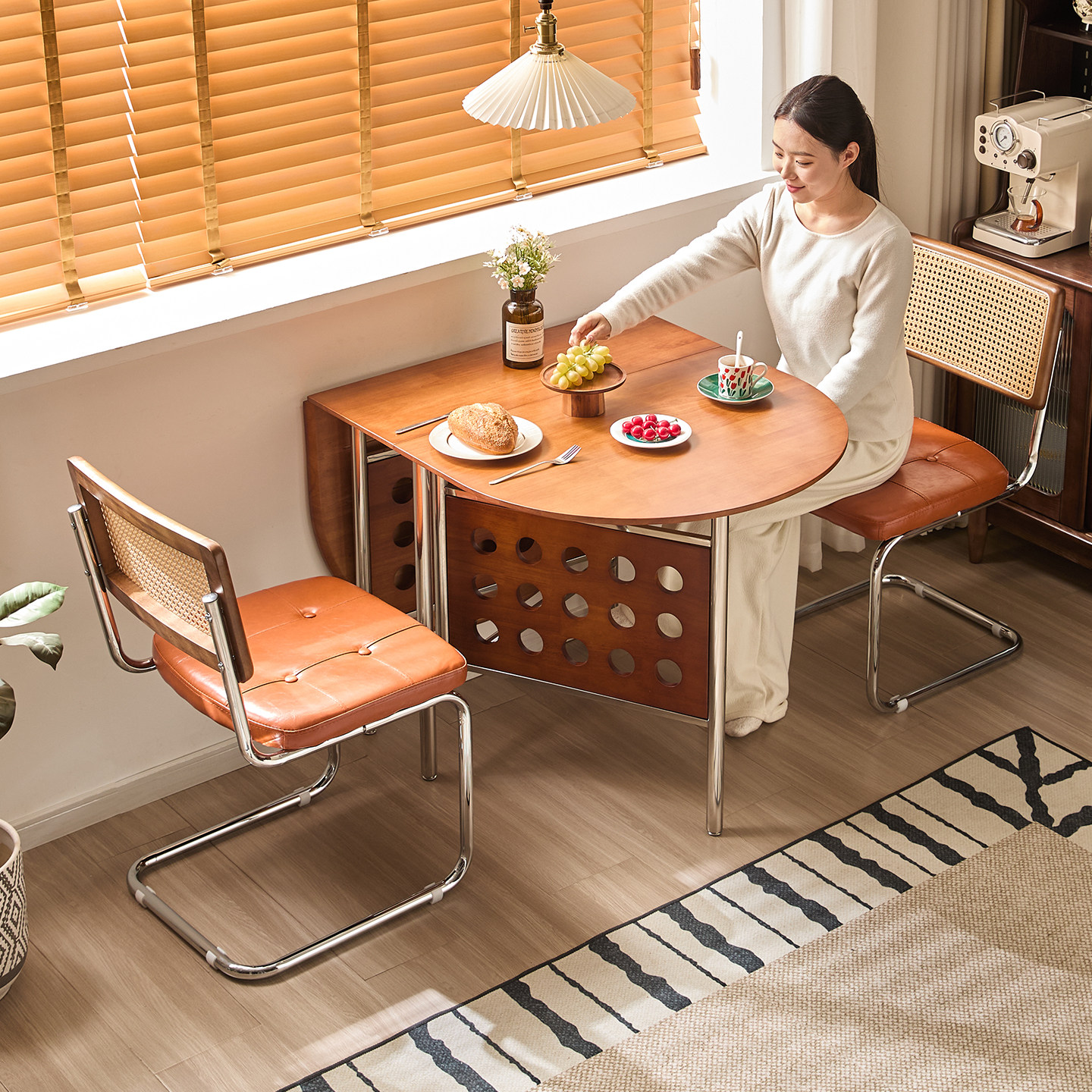 中古风岩板伸缩餐桌椅组合家用小户型可折叠方圆两用复古圆形餐桌