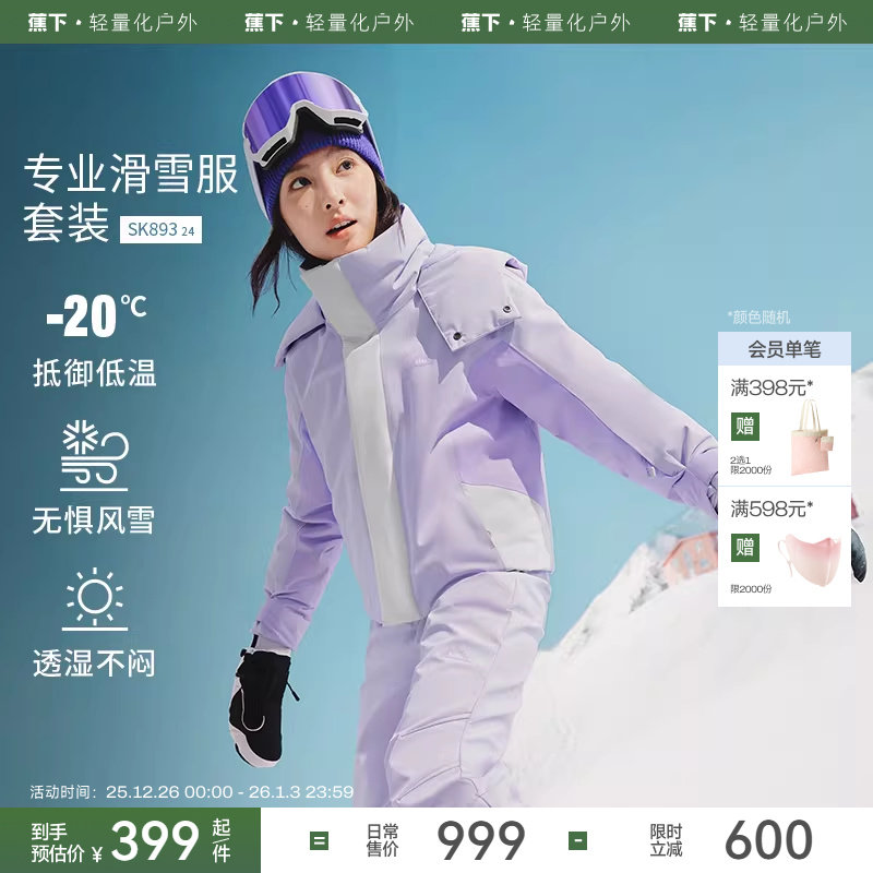 蕉下女滑雪服SK893羽绒单双板防水保暖全套滑雪装备短款修身外套