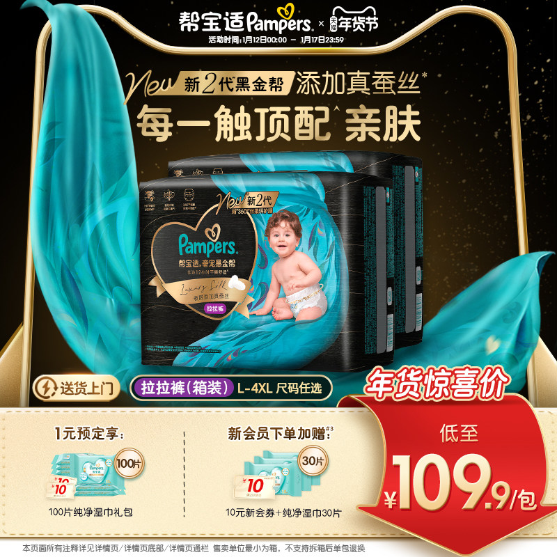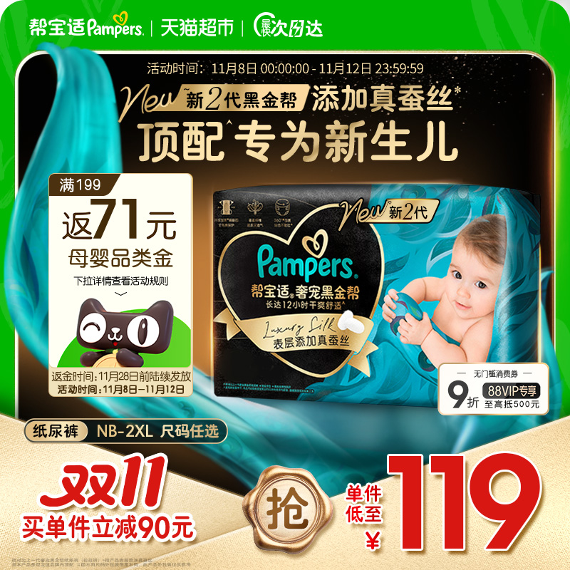 【新生儿顶配】帮宝适黑金帮纸尿裤拉拉裤真蚕丝NB-4XL超薄尿不湿