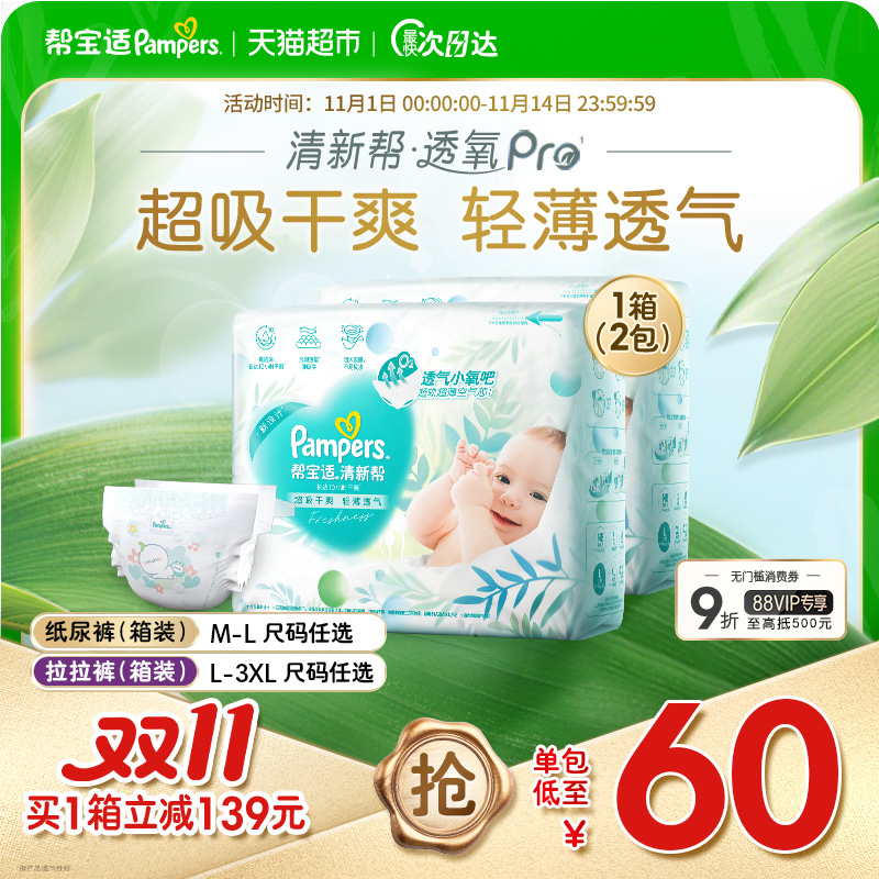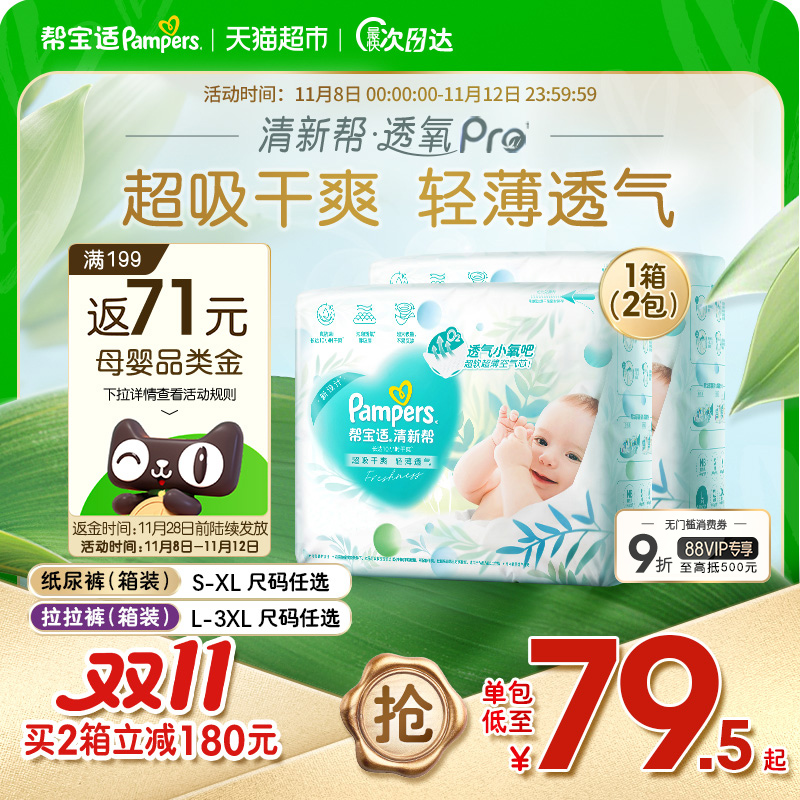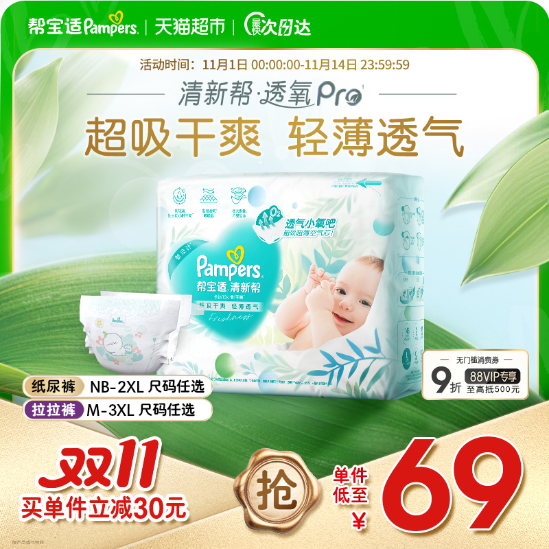【超薄透气】帮宝适清新帮透氧Pro新生儿纸尿裤S-XL尿不湿箱装