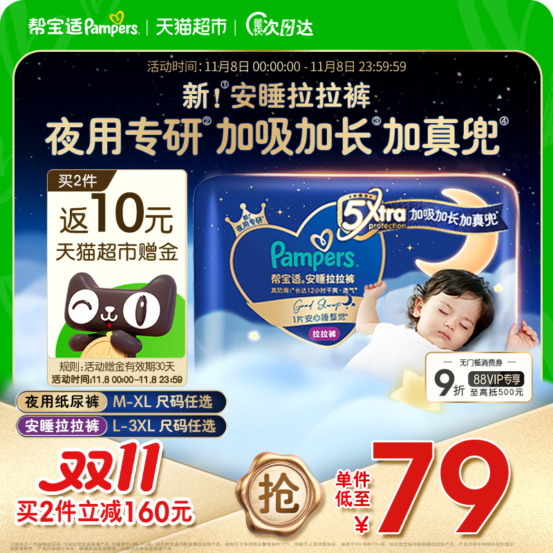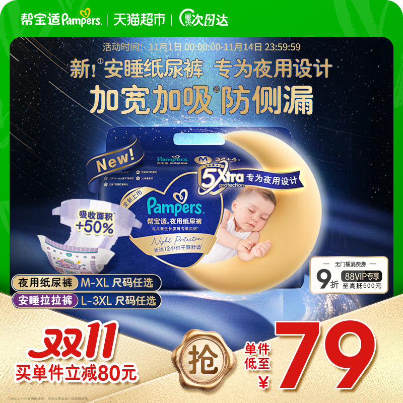 【夜用专研】新帮宝适夜用纸尿裤拉拉裤透气防漏M-3XL尿不湿