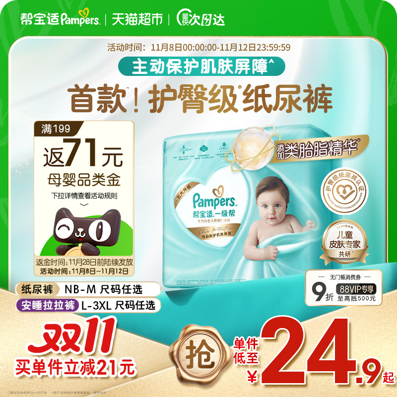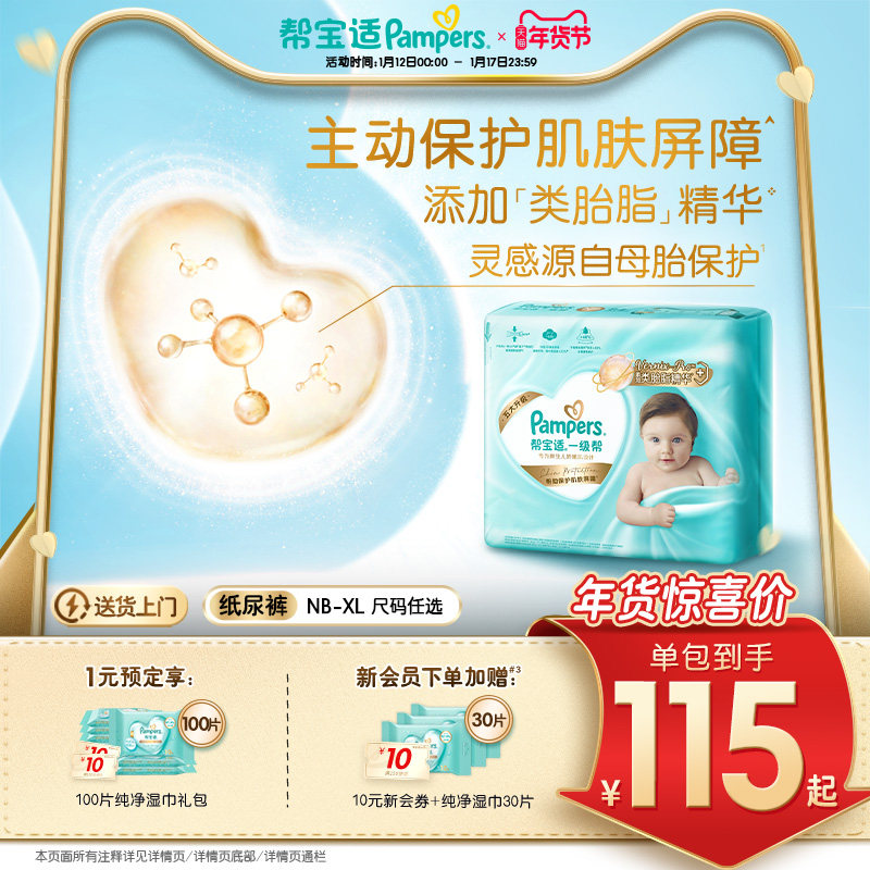 【护臀级】帮宝适一级帮纸尿裤添加类胎脂超薄NB-4XL尿不湿拉拉裤