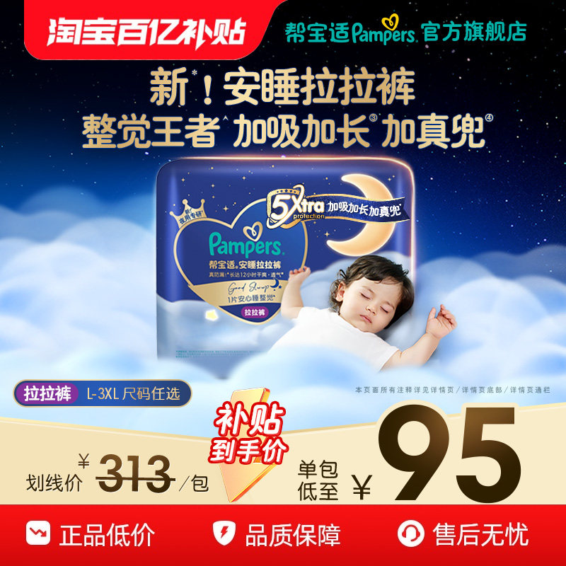 【整觉王者】帮宝适安睡拉拉裤透气L-3XL尿不湿尿裤迷你试用装