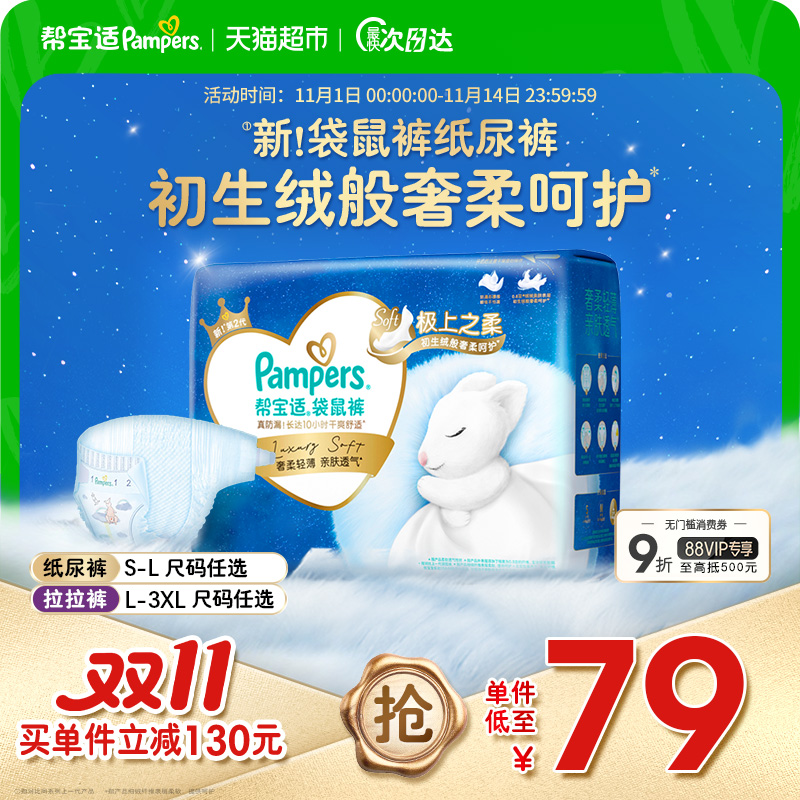 【全新加量装】帮宝适袋鼠裤纸尿裤拉拉裤S-3XL超薄防漏尿不湿