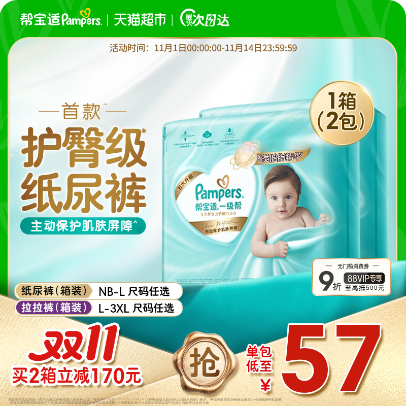 【护臀级】帮宝适一级帮箱装纸尿裤添加类胎脂NB-3XL拉拉裤尿不湿