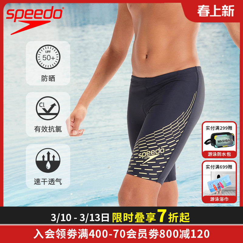 Speedo儿童泳裤五分及膝游泳裤青少年游泳训练比赛抗氯耐穿装备