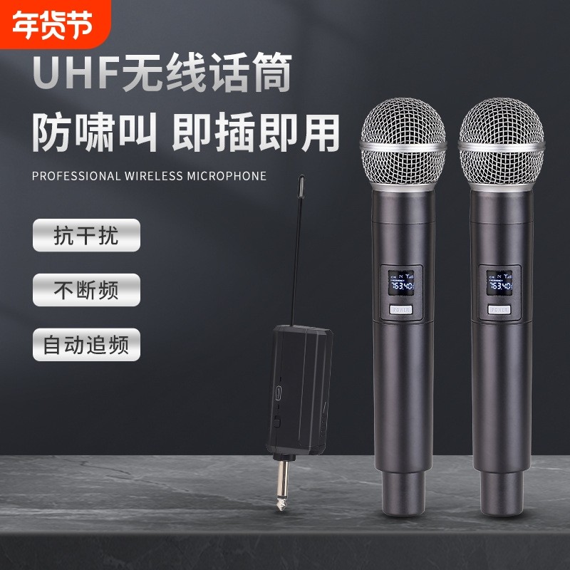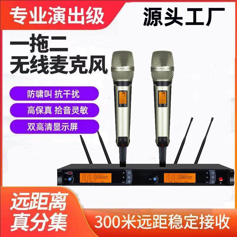 专业家用K歌无线一拖二麦克风 手持U段调频KTV婚庆舞台演出话筒