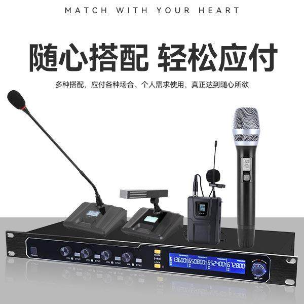 新款红外对频U段无线麦克风一拖二家用K歌充电一体机舞台演出话筒