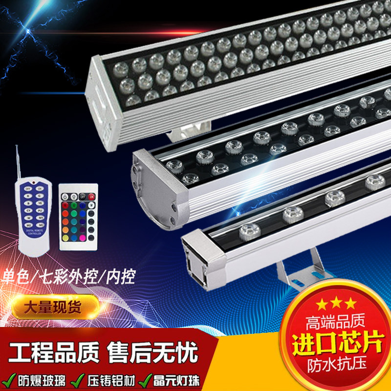 led洗墙灯户外防水室内外墙全彩dmx512外控24v七彩婚庆条形投射灯