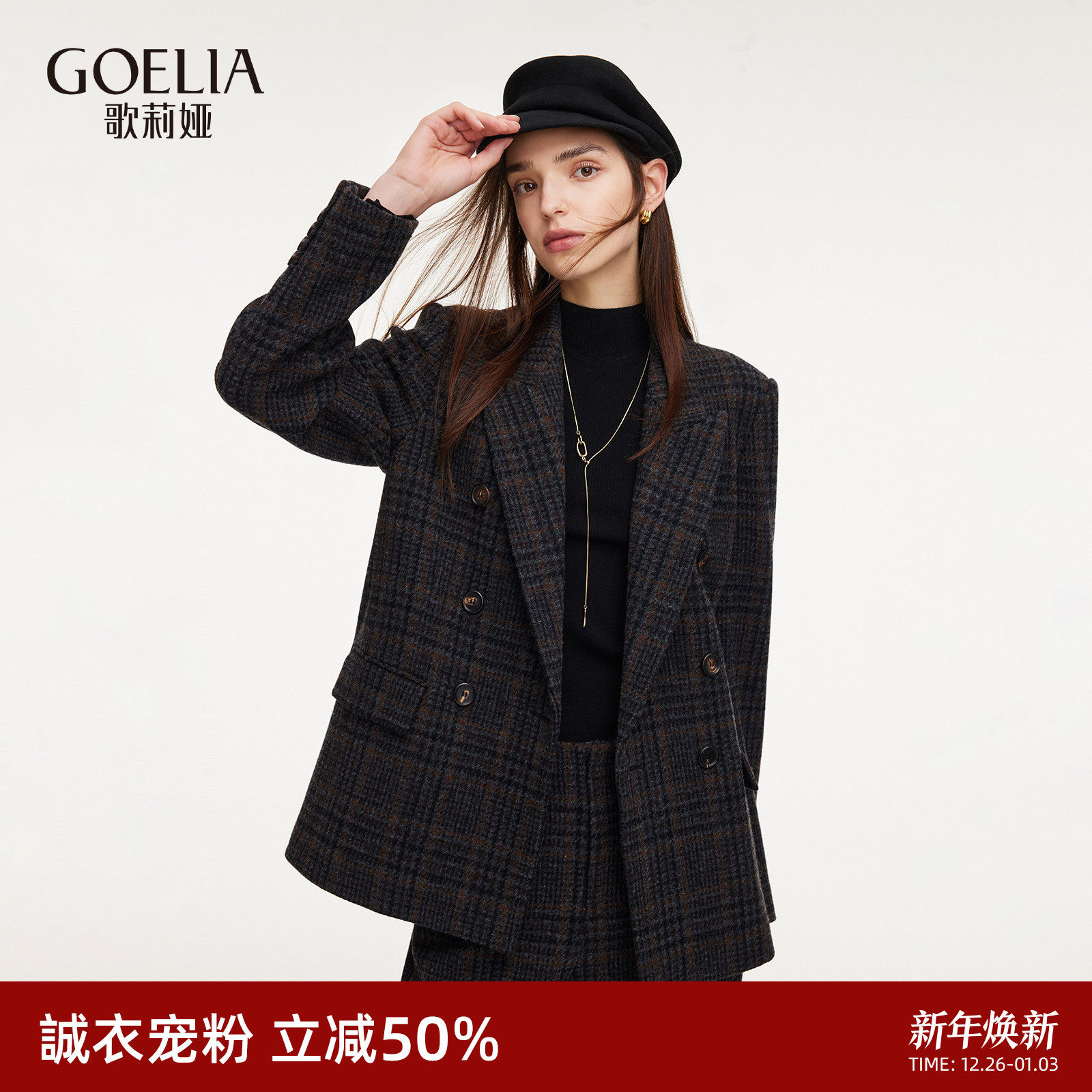 首降5折|歌莉娅男女款全羊毛西装外套冬季高知复古格纹西服正装