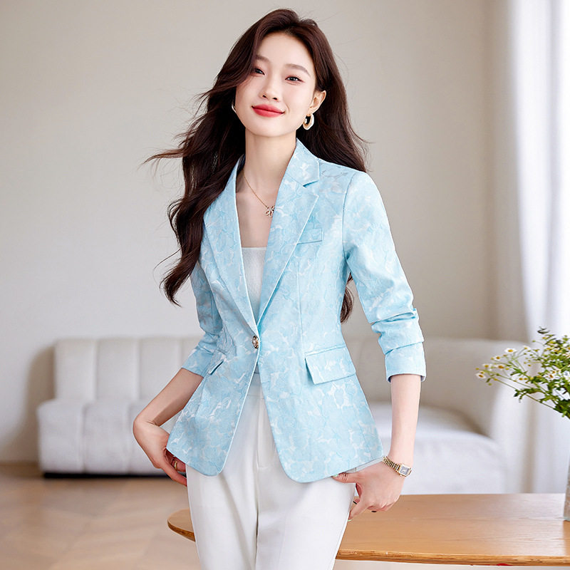 灰色碎花一粒扣修身正装西装外套女士秋季新款气质高级感休闲西服