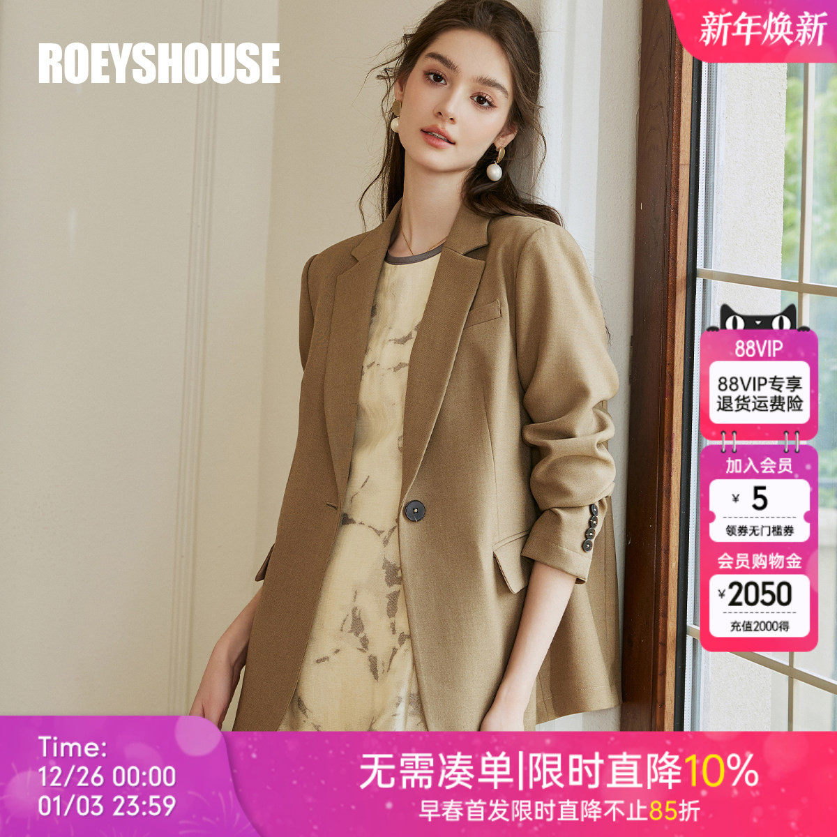 罗衣气质通勤正装西装外套女春轻熟风卡其色修身正肩薄西服10135