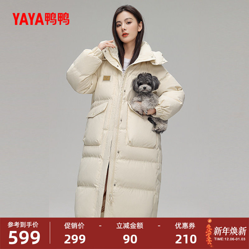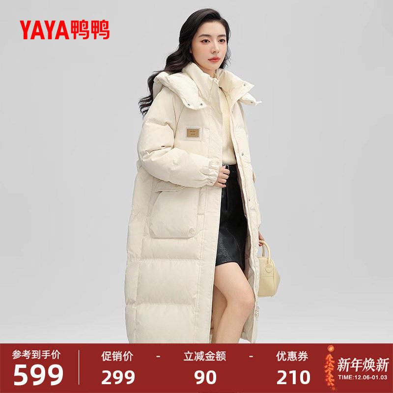 - 白鸭绒羽绒服女过膝