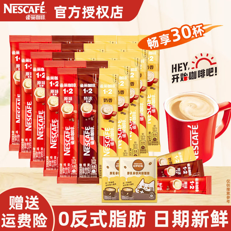 雀巢咖啡1+2原味特浓奶香多口味30条三合一速溶咖啡熬夜提神正品