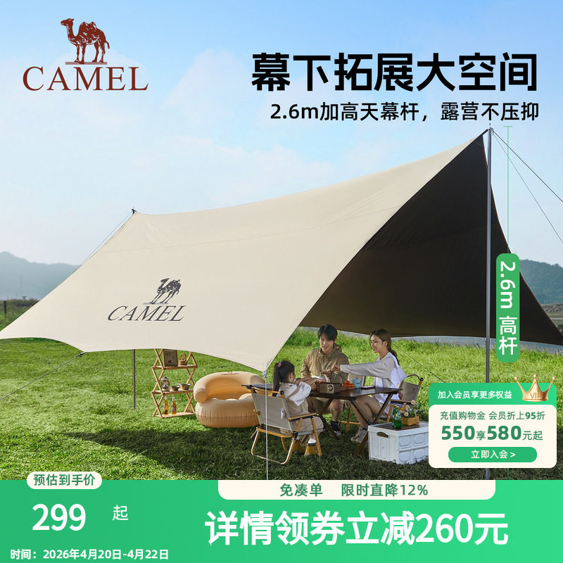 骆驼钛金黑胶天幕帐篷户外露营装备野营野外野餐防晒防雨遮阳棚布
