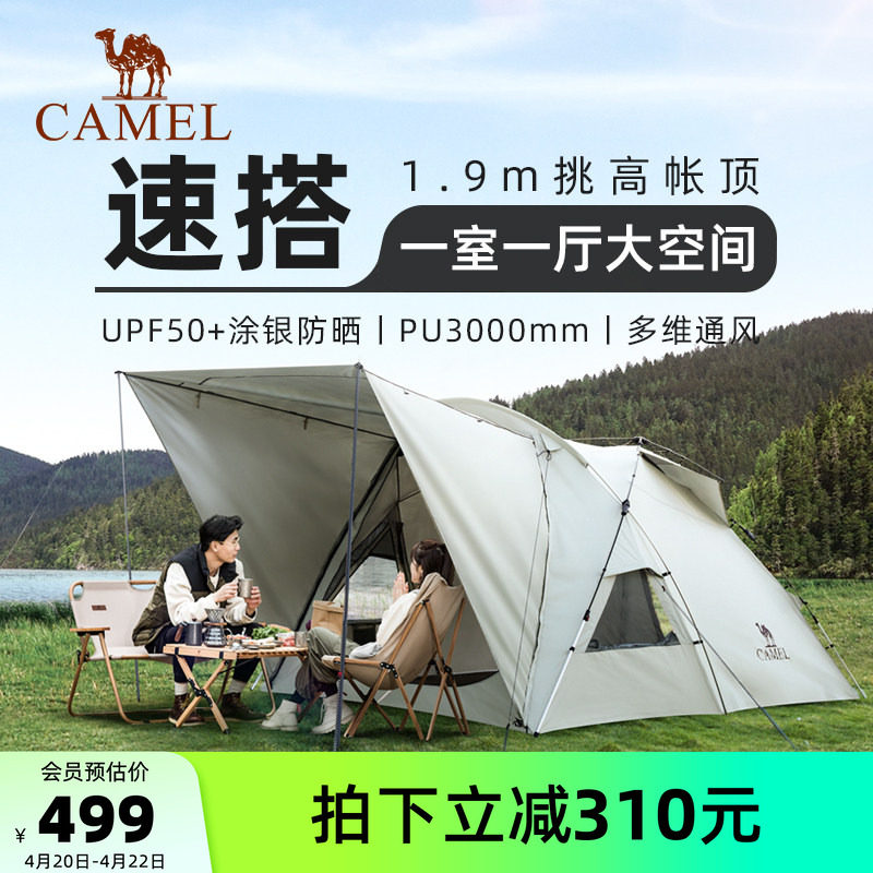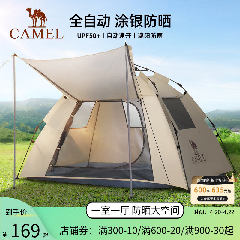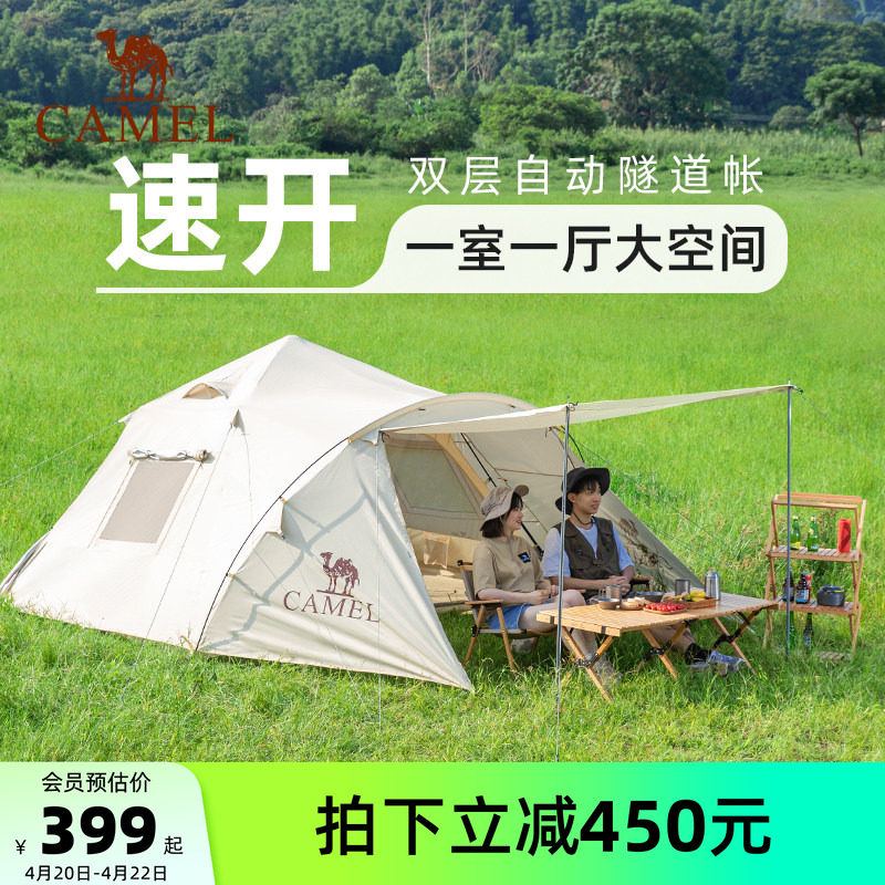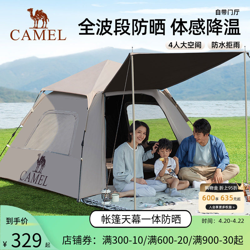 骆驼经典帐篷户外露营野营过夜便携式折叠全自动加厚黑胶全套装备