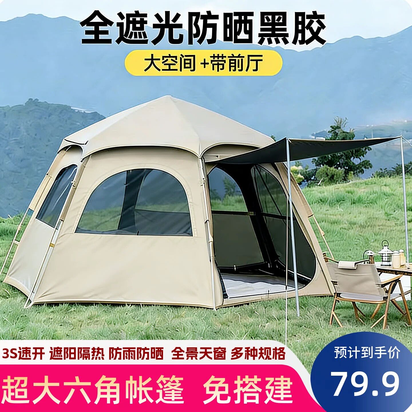 骆驼六角全自动帐篷户外露营折叠免搭速开便携野营厚过夜装备全套