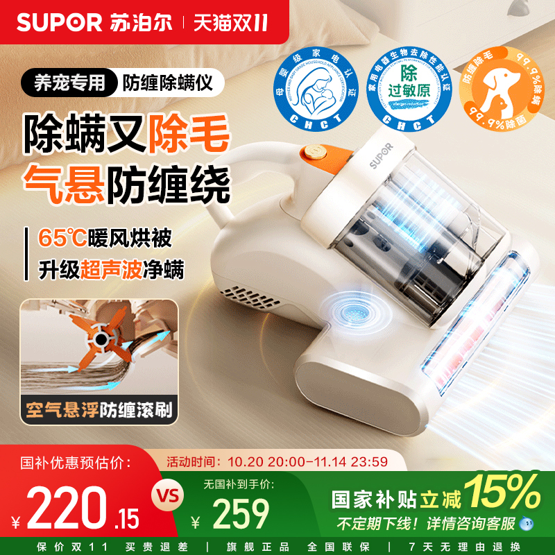 苏泊尔除螨仪家用手持双杯除螨神器紫外线杀菌猫毛狗毛吸尘器新品
