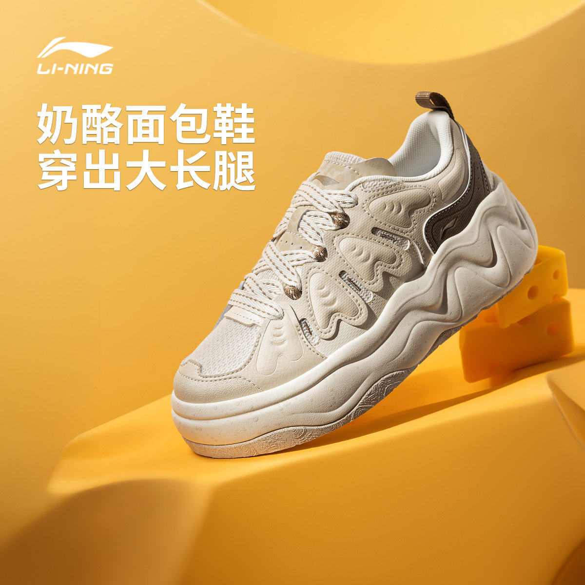 李宁奶酪3丨休闲鞋女春季厚底增高红色新款新年面包鞋运动鞋板鞋