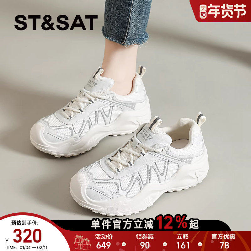 星期六运动休闲鞋女春季新款旅游徒步登山鞋户外增高小白老爹鞋爆
