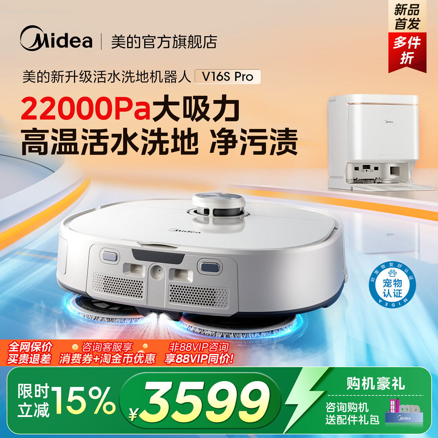 【重磅新品】美的扫地机器人V16spro热水融污洗地智能扫拖吸一体
