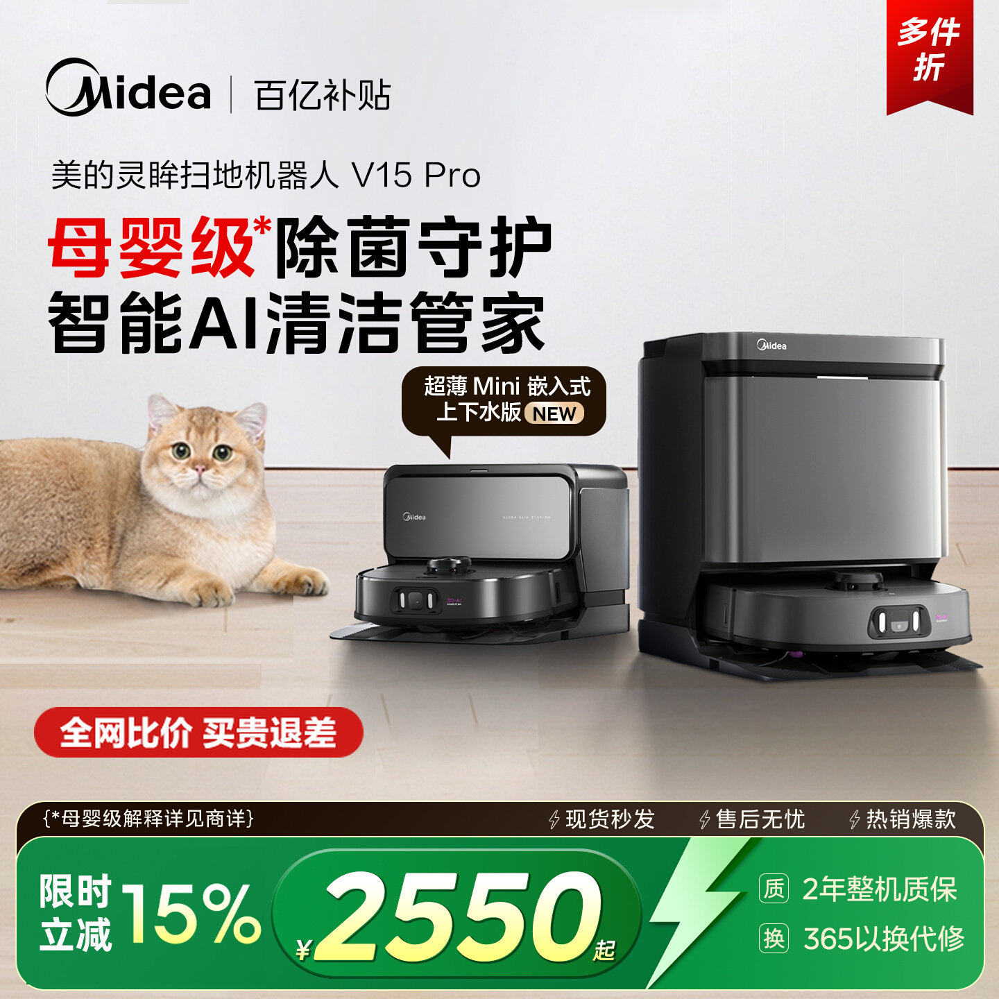【限时补贴15%】美的扫地机器人V15Pro扫拖一体家用全自动旗舰店