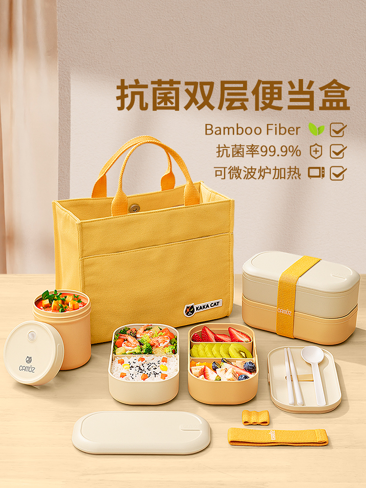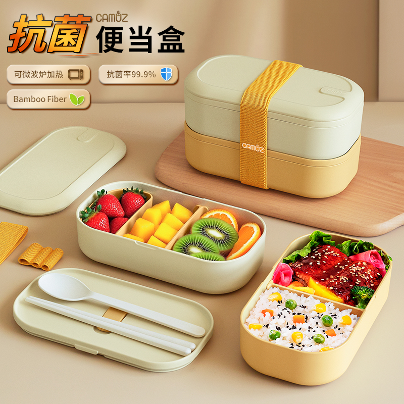 CAMUZ双层饭盒 日式可微波炉加热便当盒 上班族带饭专用密封餐盒