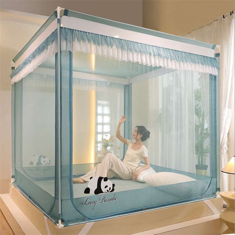 蚊帐免安装蒙古包加密家用卧室儿童钢丝婴儿防摔方顶可折叠式纹帐