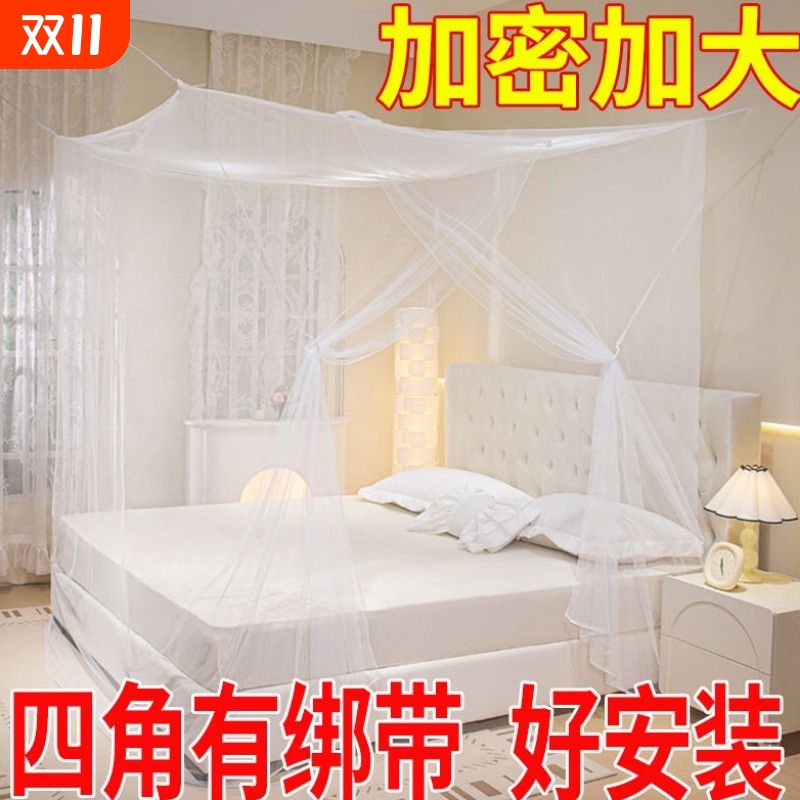 老式家用加密蚊帐卧室双人床大床方顶绑带式文帐出租房子母床帐篷