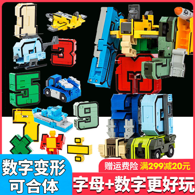 数字合体变形玩具男孩礼物益智百变机器人儿童3-4字母6岁金刚战队