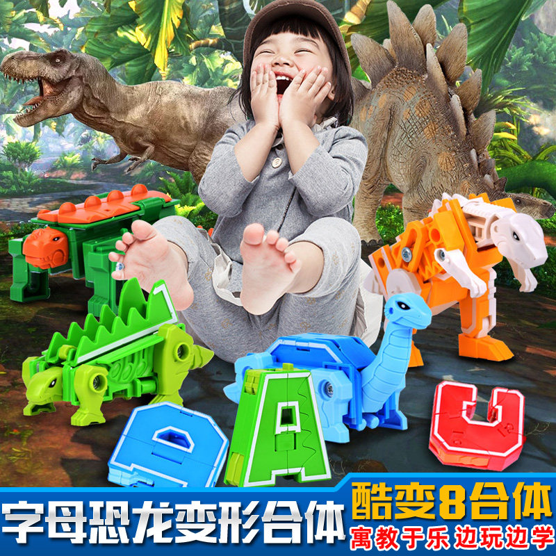字母变形儿童战队百变机器人益智玩具数字恐龙儿童5男孩3-6岁礼物