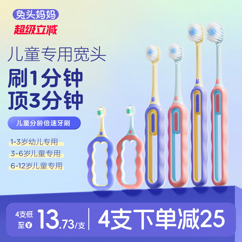 兔头妈妈儿童牙刷儿童倍速牙刷3-6-12岁宽头软毛牙刷换牙期专用