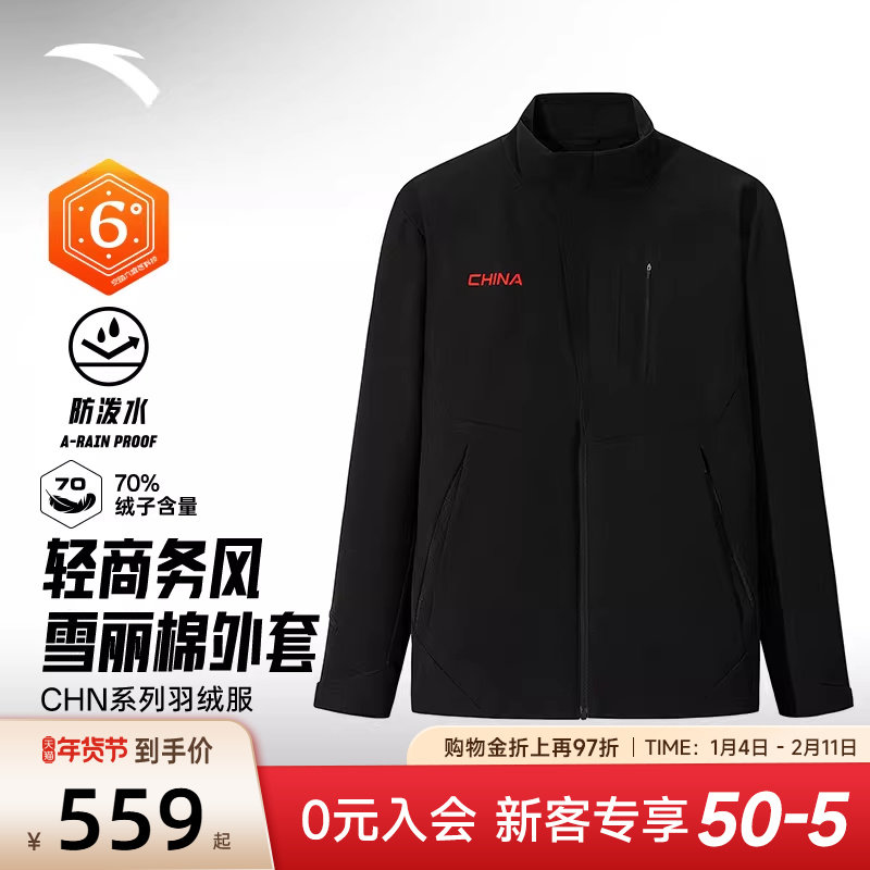 安踏CHN中国外套男行政夹克冬季立领加绒通勤运动上衣152547703N