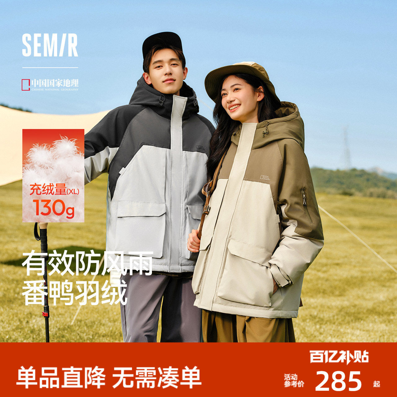 森马中国国家地理系列羽绒服男防雨防风三防外套情侣工装冬中长款