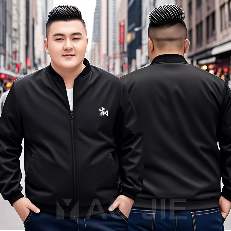 春秋季时尚休闲商务工作夹克男宽松大码中国外套男士中年胖子上衣