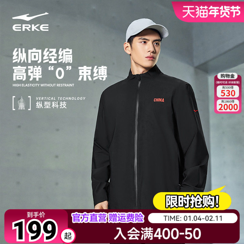 纵型科技丨鸿星尔克中国外套男2026春季新款男士运动针织立领夹克
