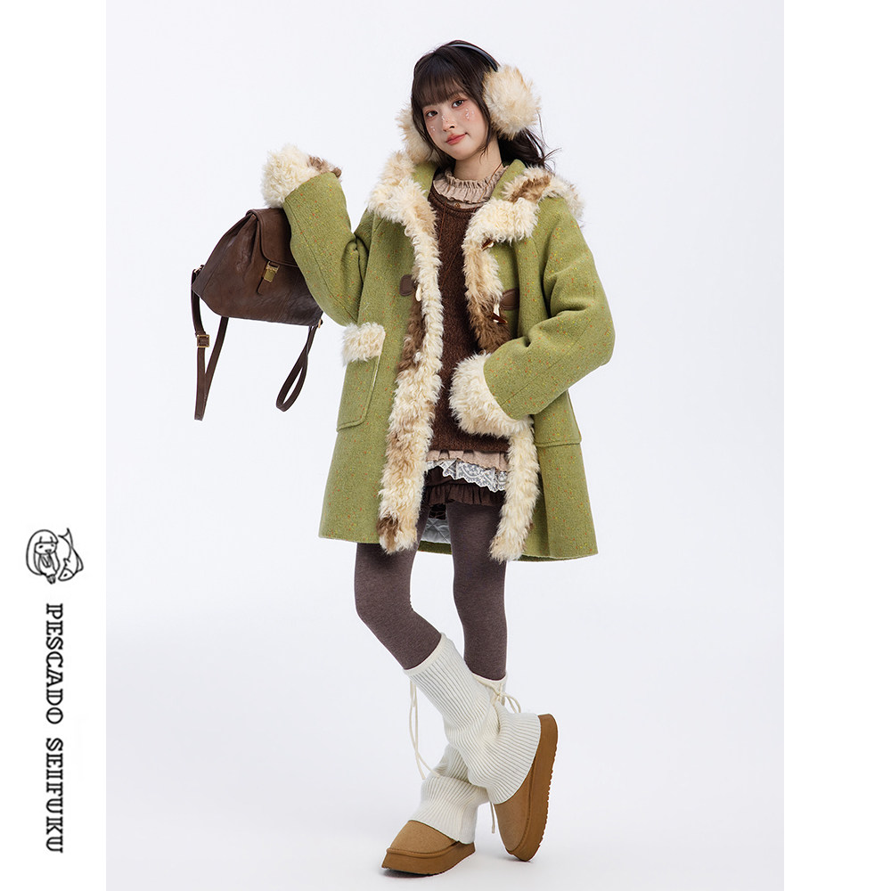 - 绿毛呢大衣