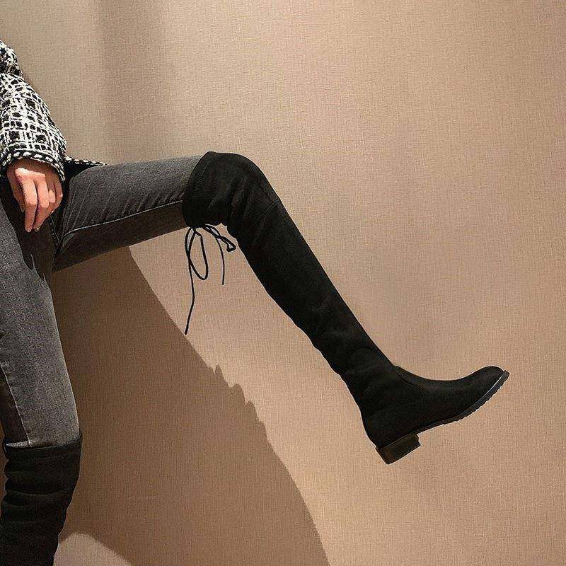 瘦腿靴女厚底粗跟靴子长筒过膝靴包腿弹力靴绒面长腿靴加绒高筒靴
