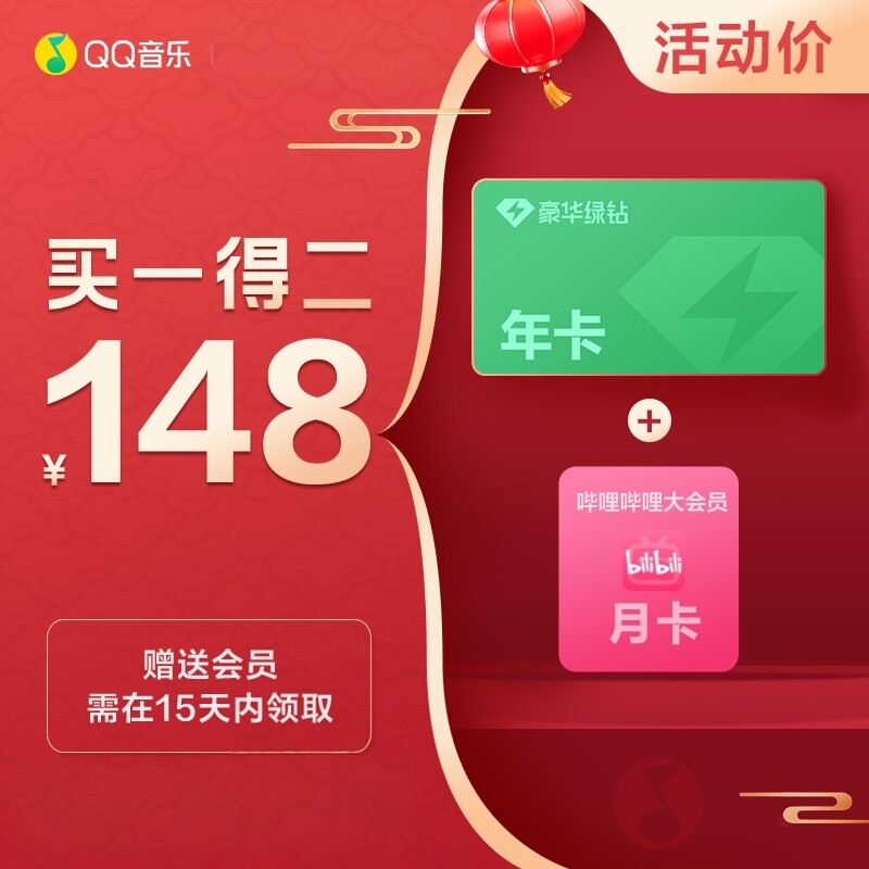 【新客包年138元】QQ音乐会员豪华绿钻会员年卡12月充值连续包年
