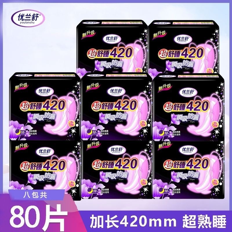 正品卫生巾夜用420mm纯棉柔日夜用组合装超长姨妈巾整箱日用加长