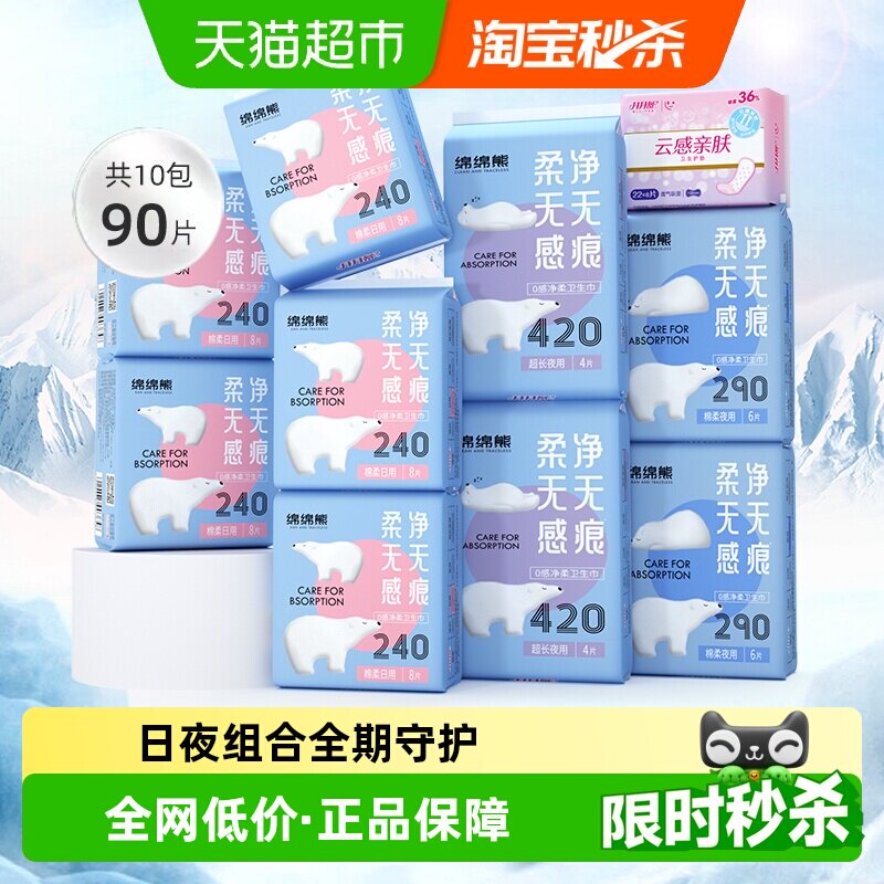 美喵卫生巾医护级日夜组合装轻薄防漏棉柔亲肤学生少女姨妈巾官旗