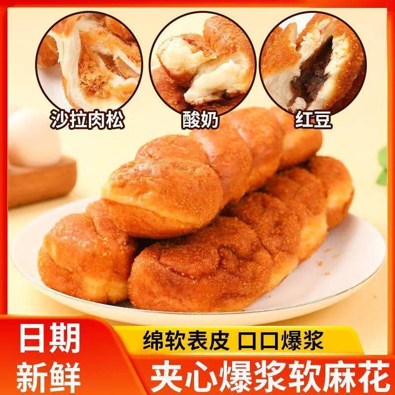 爆浆酸奶味大软麻花面包早餐整箱网红小零食小吃休闲食品宵夜充饥