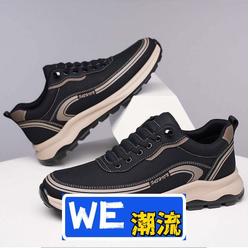 晋江和诚鞋业新款四季百搭运动鞋皮面防水耐脏跑步鞋厚底增高男式