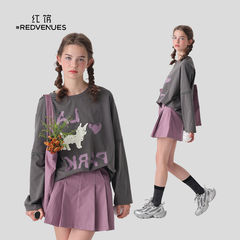 红馆早秋流行穿搭卫衣女套装裙减龄一整套小个子穿搭百褶裙两件套